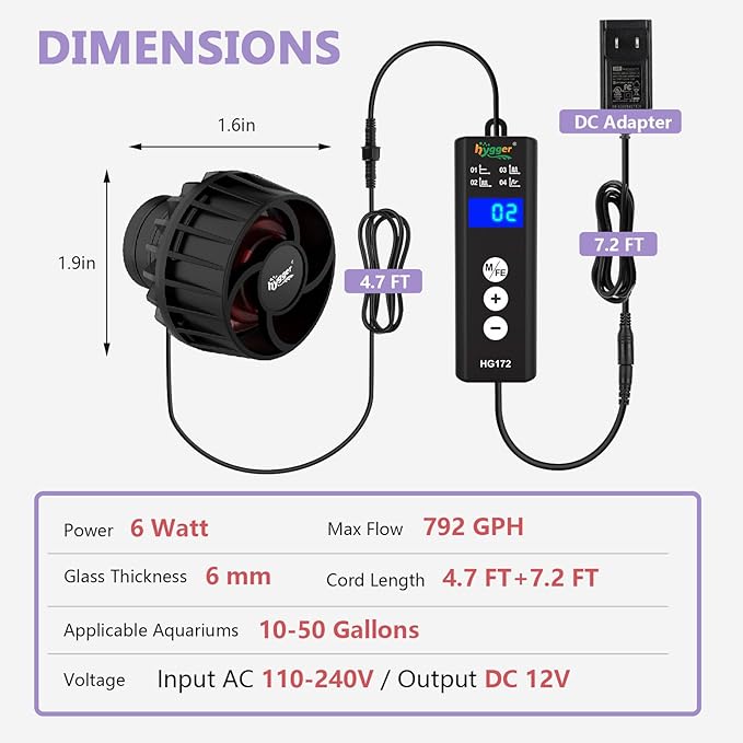 - Super Easy To Operate:The included controller provides an intuitive digital display and easy-to-use customization options, allowing users to adjust wave patterns, speed, and frequency of waves to suit the specific needs of their aquarium setup