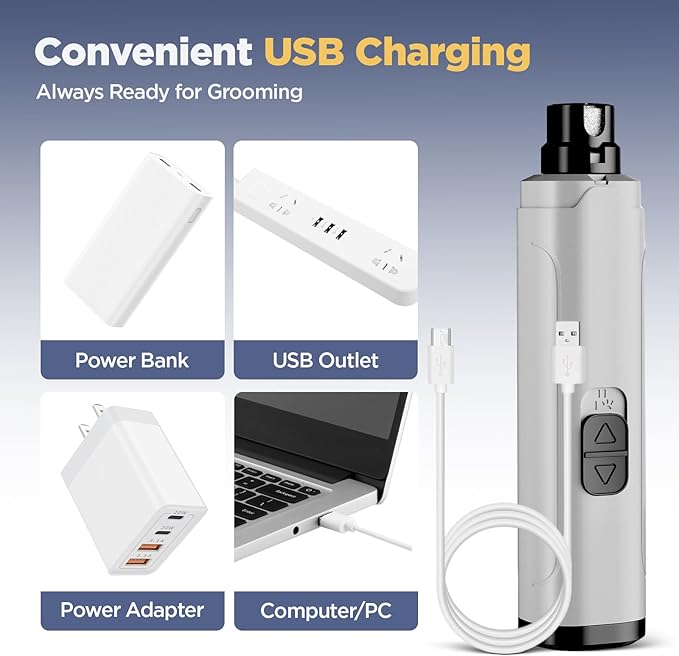 - 【Effective & Precise Trimming】: Powerful dog nail files with advanced diamond bit grinder and motor, provide faster, more precise, and more comfortable pet claw grinding than manual dog nail clippers. Recommended by veterinarians and pet grooming professionals, painlessly and precisely trim your pet's nails anywhere, is a superior pet supplies.