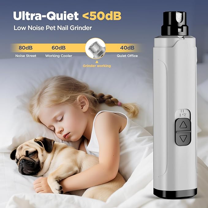 YGGDRA Dog Nail Grinder Upgraded - Professional 2-Speed Super Quiet and Low Vibration Electric Pet Nail Grinder with LED Lights - Painless Paws Grooming & Smoothing for Small to Large Dogs