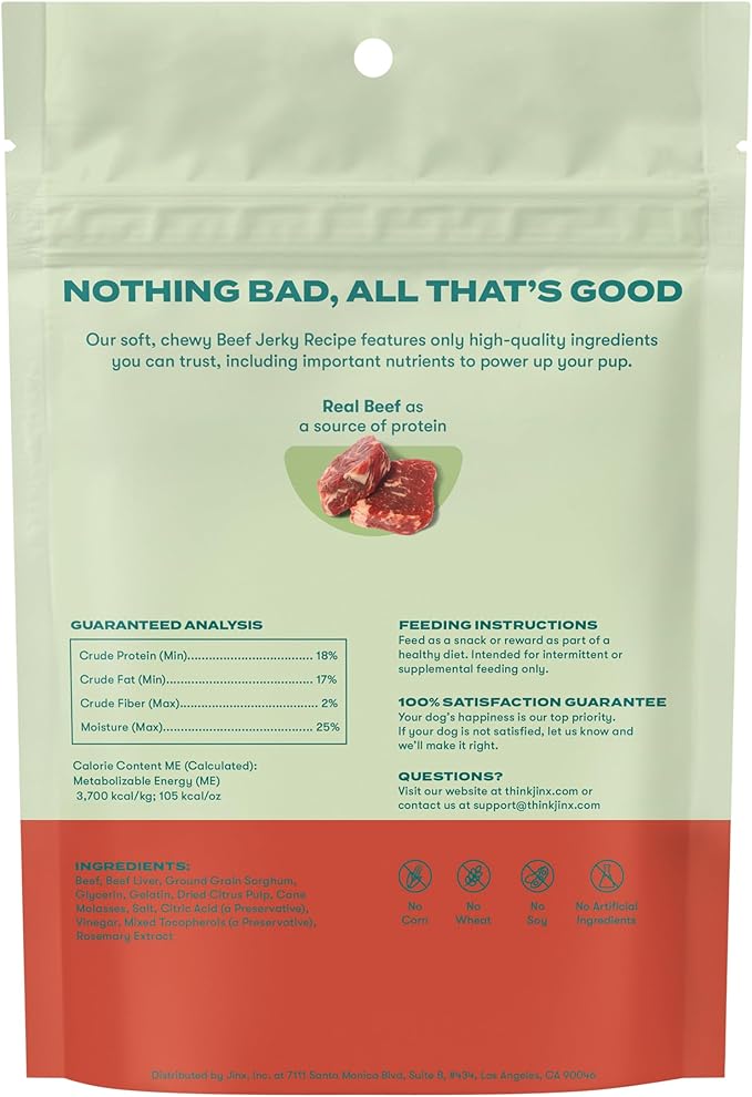 - ALL NATURAL INGREDIENTS: Real beef is the first ingredient in our soft & chewy jerky dog treats. Jinx beef tenders are packed with protein & flavor. Made with all-natural ingredients you can trust, carefully selected to provide a wholesome and delicious snacking experience.