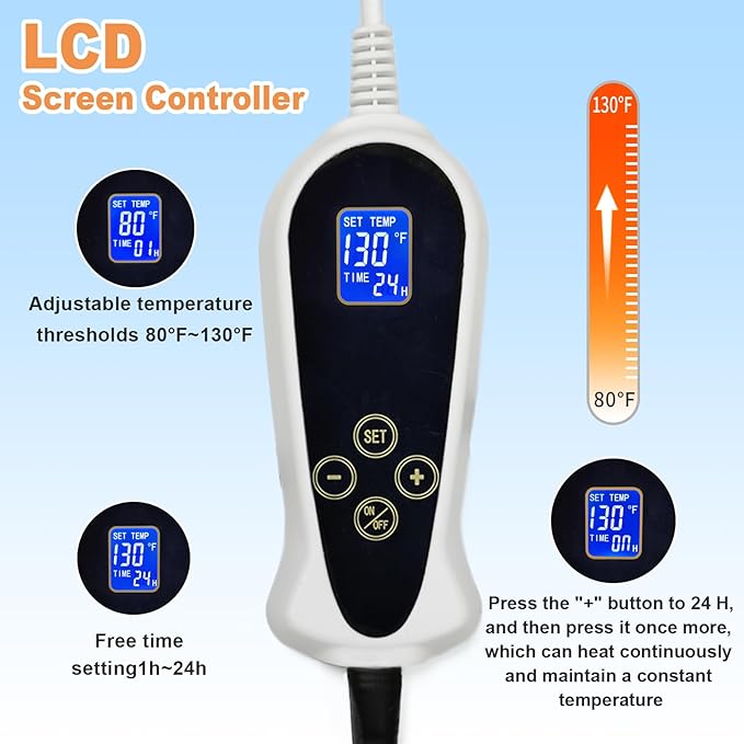 - Special Feature : Digital Temperature Control, Lcd Display, Machine Washable, Non Skid Bottom, Waterproof