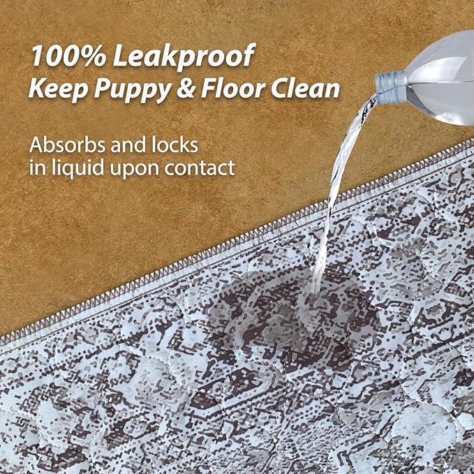 nunubaby Washable Pee Pads for Dogs, Stylish, Non-Slip and Leak-Proof Pee Pads. Reusable Potty Pads for Dogs for Crates and Floors.(Brown/Geo, 72" x72")
