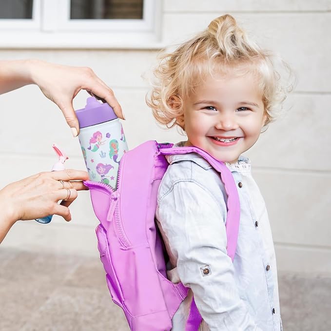Kid Water Bottle 12oz with Straw Lid - 2-Pack Insulated Stainless Steel Water Bottles for Kids Girls - Travel Cup for School Sports, Rainbow & Mermaid
