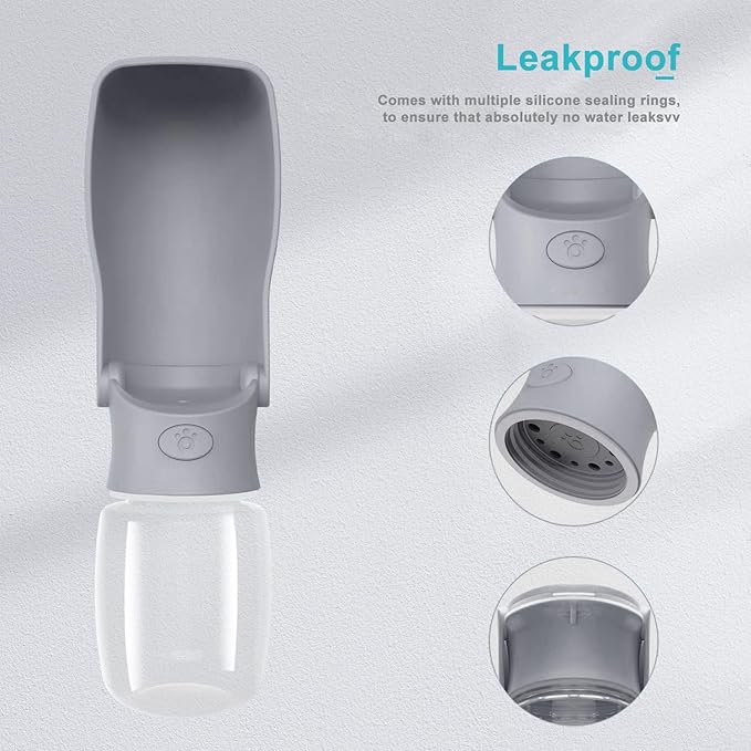 - Double Leak-proof Design: The portable dog water bottle comes with silicone rubber sealing rings and waterproof keys, the perfect solution for leaking water.
