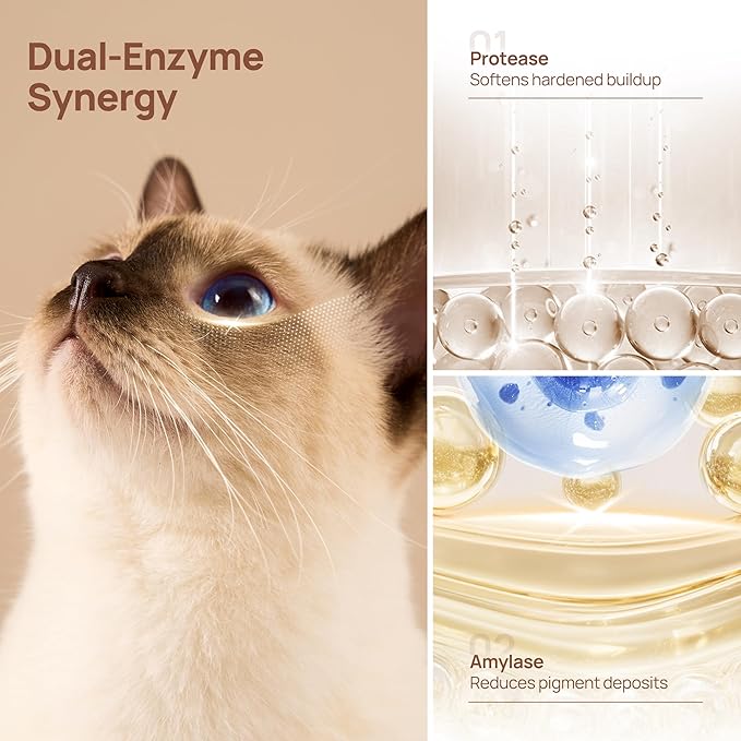 - 【Dual-Enzyme Power】Deep Cleans Stubborn Tear Stains, Protease & Amylase break down protein secretions & carbohydrate residues, dissolving pigment adhesion matrix 3X faster than regular wipes.