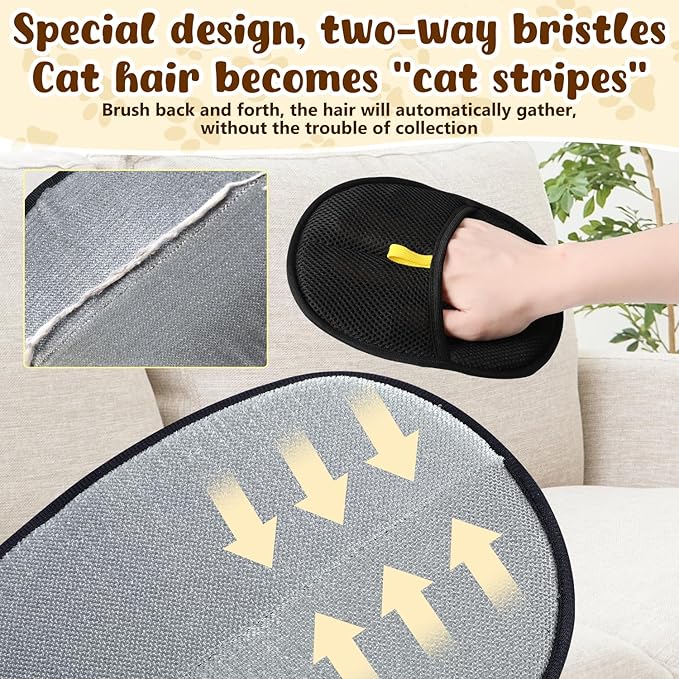 Pet Hair Removal Glove,Electrostatic Efficient Grooming Gloves for Pet Hair,Cat Grooming Gloves,Upgraded Animal Fur Removal Tool,Reusable Cat & Dog Hair Remover for Couch,Carpet,Curtain(2PCS)