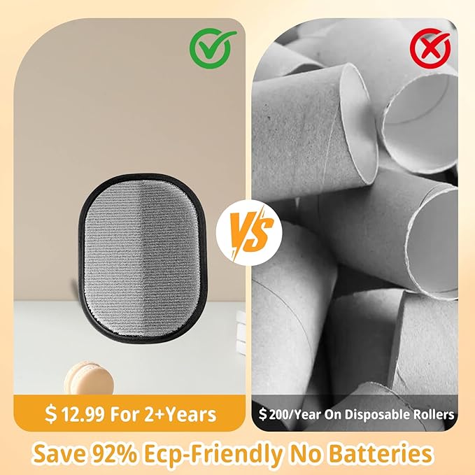 - 【 Electrostatic Grip & All-Surface Cleaning 】Leverages strong static electricity to effortlessly attract and lift stubborn pet hair, lint, and dust from virtually any fabric surface - furniture, sofas, carpets, rugs, clothing, bedding, and car seats, . No more struggling with ineffective brushes or wasteful sticky rollers