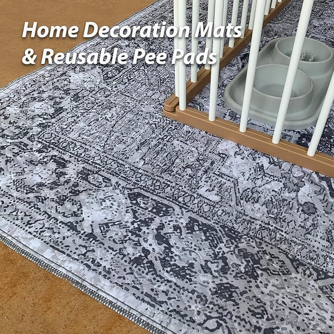 nunubaby Washable Pee Pads for Dogs, Stylish, Non-Slip and Leak-Proof Pee Pads. Reusable Potty Pads for Dogs for Crates and Floors.(Gray/Geo, 18" x24")