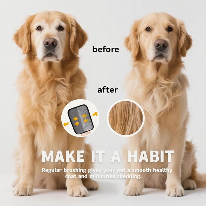 Clean pet hair instantly with the ALLISTAR Pet Hair Remover — a reusable double-sided lint brush with a self-cleaning base for clothes, furniture, and car interiors.