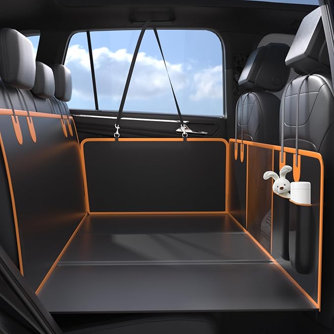 - Mesh viewing window & ease pet anxiety: The dog back seat extender has a mesh window that allows your dog to see you, reducing your dog's anxiety. The encrypted and wider webbing lock is more sturdy, and this dog back seat extender also comes with large storage pockets for your dog's toys and treats. Take your furry friend out for a happy trip!