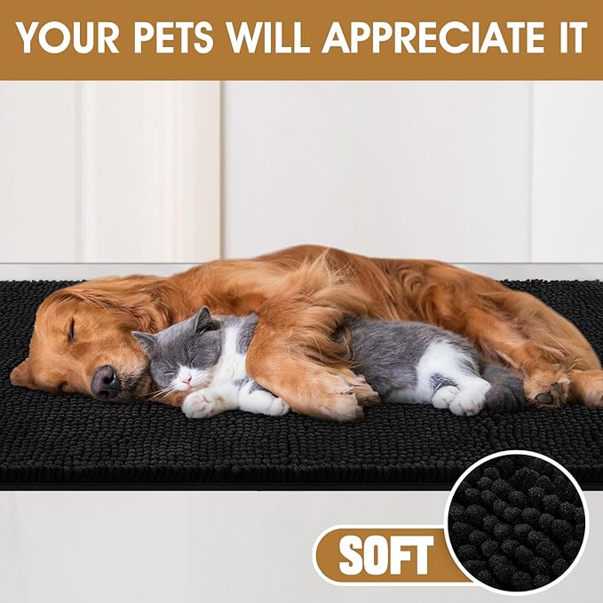 IM HOME Extra Large 71" x 25" Black Dog Door Mats for Muddy Paws, Chenille Absorbent Dog Mat, Non Slip Heavy Mud Mat for Dogs, Soft Pet Bed Mat for Entryway, Mud Paws, Inside Floor