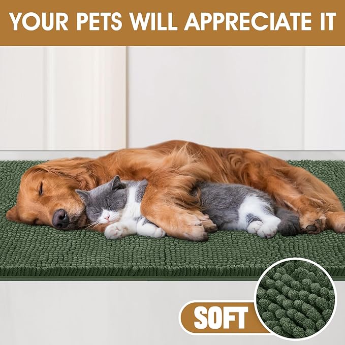 IM HOME Extra Large 71" x 25" Olive Dog Door Mats for Muddy Paws, Chenille Absorbent Dog Mat, Non Slip Heavy Mud Mat for Dogs, Soft Pet Bed Mat for Entryway, Mud Paws, Inside Floor