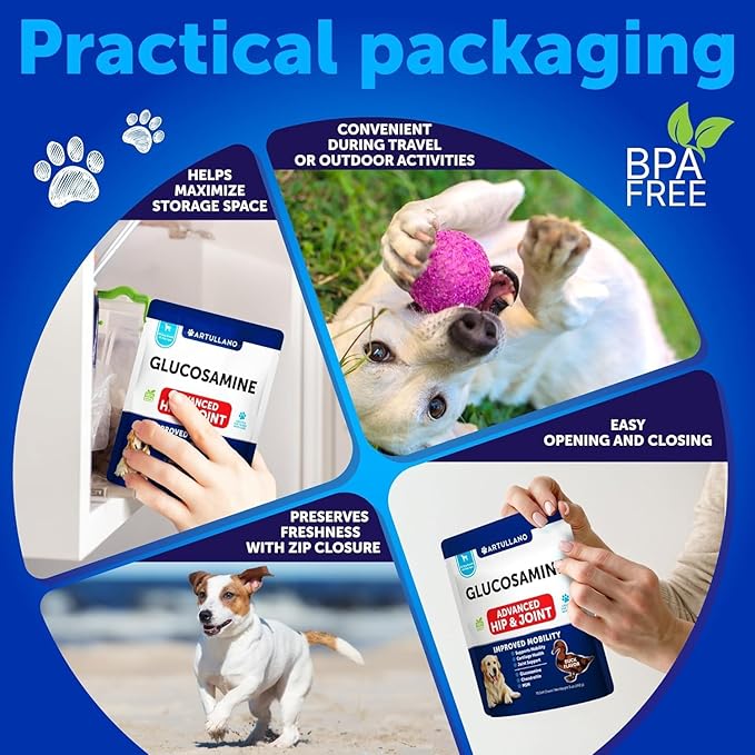 - Help Stay Active: our dog joint supplement large breed aid your pet feel comfortable while walking, running, or jumping. Whether it's a senior dog or a small puppy, treats help all ages & breeds stay playful & enjoy every move