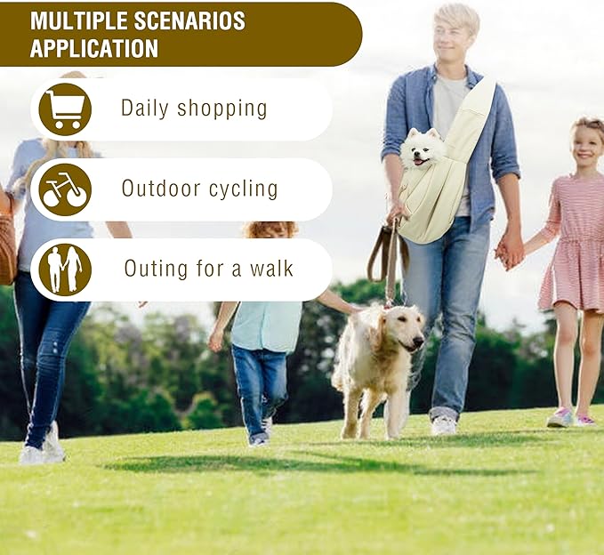 Dog Carrier Sling - Extra Wide Padded Shoulder Straps, Adjustable Hands-Free Small Dog Camier, Ergonomic Design for Travel and Daily Walks, for Small Dogs and Cats 12 lbs, (Buff)