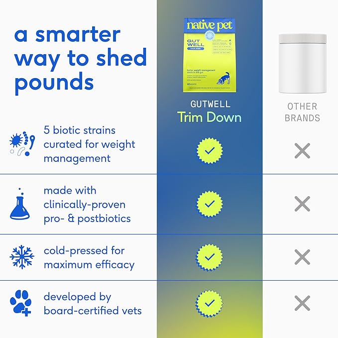 GutWell Trim Down - Weight Management Dog Food Topper - Dog Weight Loss Supplement Promotes Feeling of Fullness, Healthy Metabolism & Lean Muscle with Triple-biotic Blend & L-Carnitine - 60 Scoops