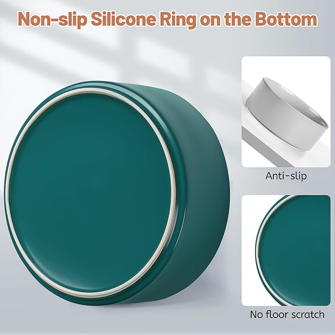 - [Nonslip and Noiseless Base] : Our dog bowls have soft white silicone rings on the bottom to stop sliding or reduce risks of bowl cracks and chips as well as floor damage, prevent clanking noise and keep the pet bowl in place when eating and drinking.
