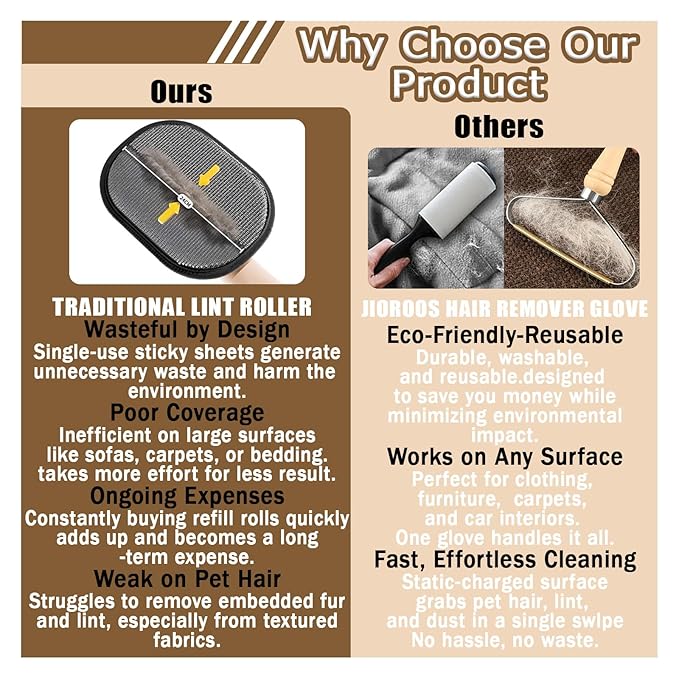 - 【Effortless Cleaning with Static Electricity Technology】Using electrostatic power, these gloves easily remove lint, pet hair, and dust with gentle strokes. Say goodbye to tedious rolling and struggling with stubborn debris!