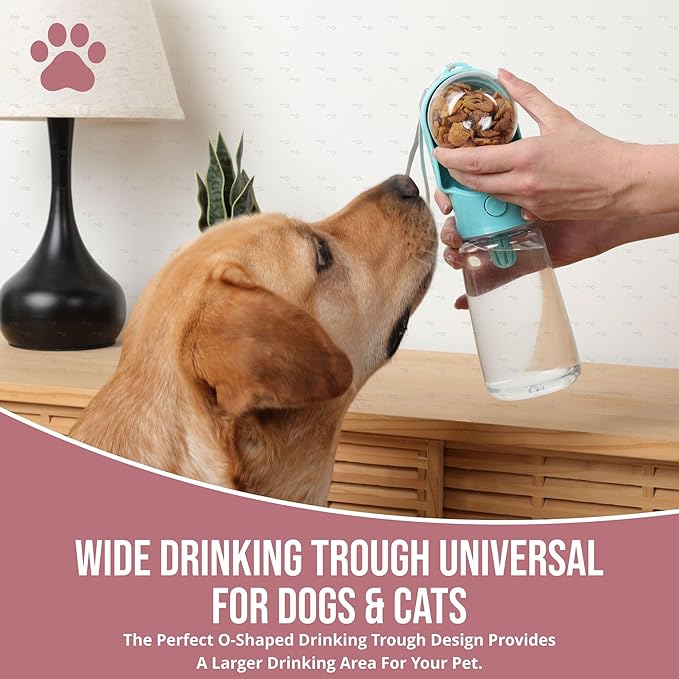 - Easy One-Hand Use – Just press and pour! This portable water bottle for dogs dispenses water with one hand and features a built-in bowl your dog can drink from directly—no spills, no waste. A perfect addition to your walking dog gear.