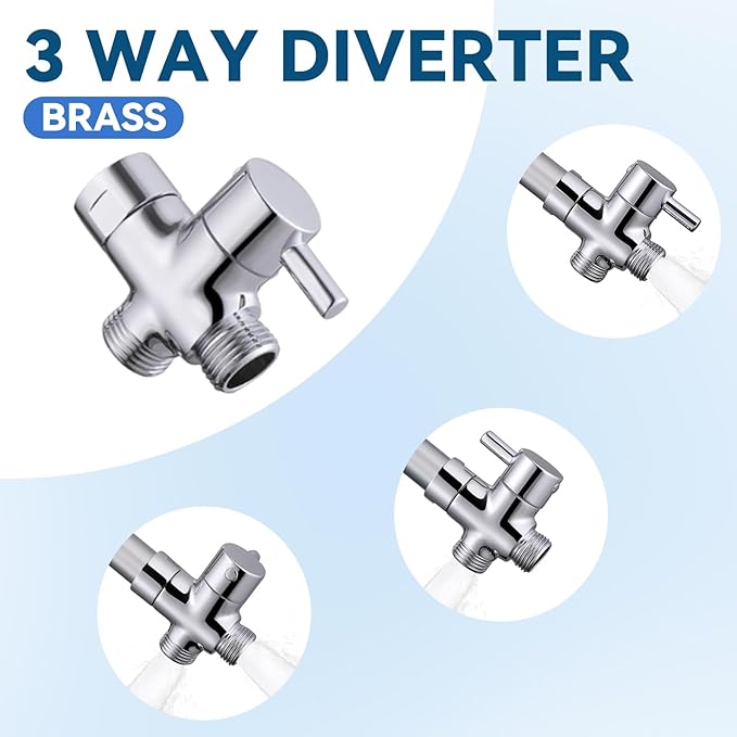 - 3-Way Diverter: You can switch the water flow between the showerhead and the pet sprayer smoothly with the 3-way diverter which is installed on the original shower arm. The metal construction provides long service life and no leak.