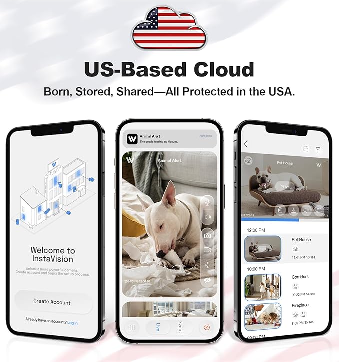 - 【Blazing-Fast & Ultra-Secure–Powered by Local Servers】Our home cameras indoor utilize U.S.-based servers, ensuring close proximity for stable connections and ultra-smooth real-time monitoring. Tested data proves that our servers reduce latency by 30%-50% compared to competitors. Most importantly, all data is stored domestically, keeping your data flow strictly within U.S. borders to fully safeguard your privacy.