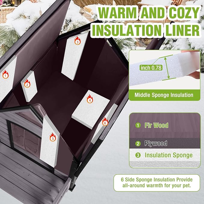 - Efficient Insulation Performance : The dog house is equipped with insulation sponge on all six sides, 0.78 inches thick, which effectively blocks out the cold from the outside, keeping the interior warm. Whether it's rainy, snowy, or hail, it provides a warm and comfortable haven for your pet.