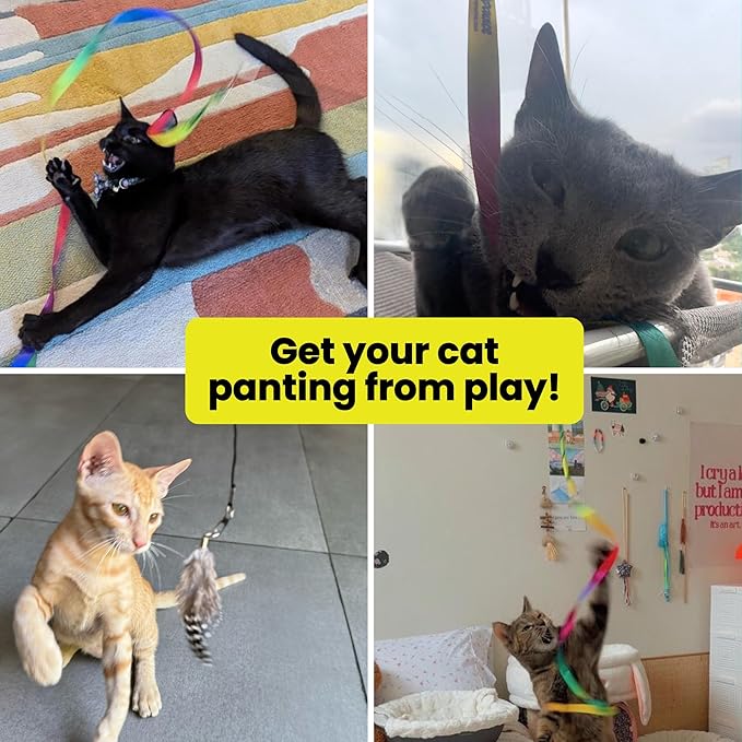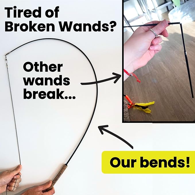 Forever Stick Ribbons - The Unbreakable Cat Toy Wand & Ribbon Attachments (3 Pc), Extra Long Durable Interactive Cat Toy for Indoor Cats, Feather Kitten Toys for Bored Indoor Adult Cats