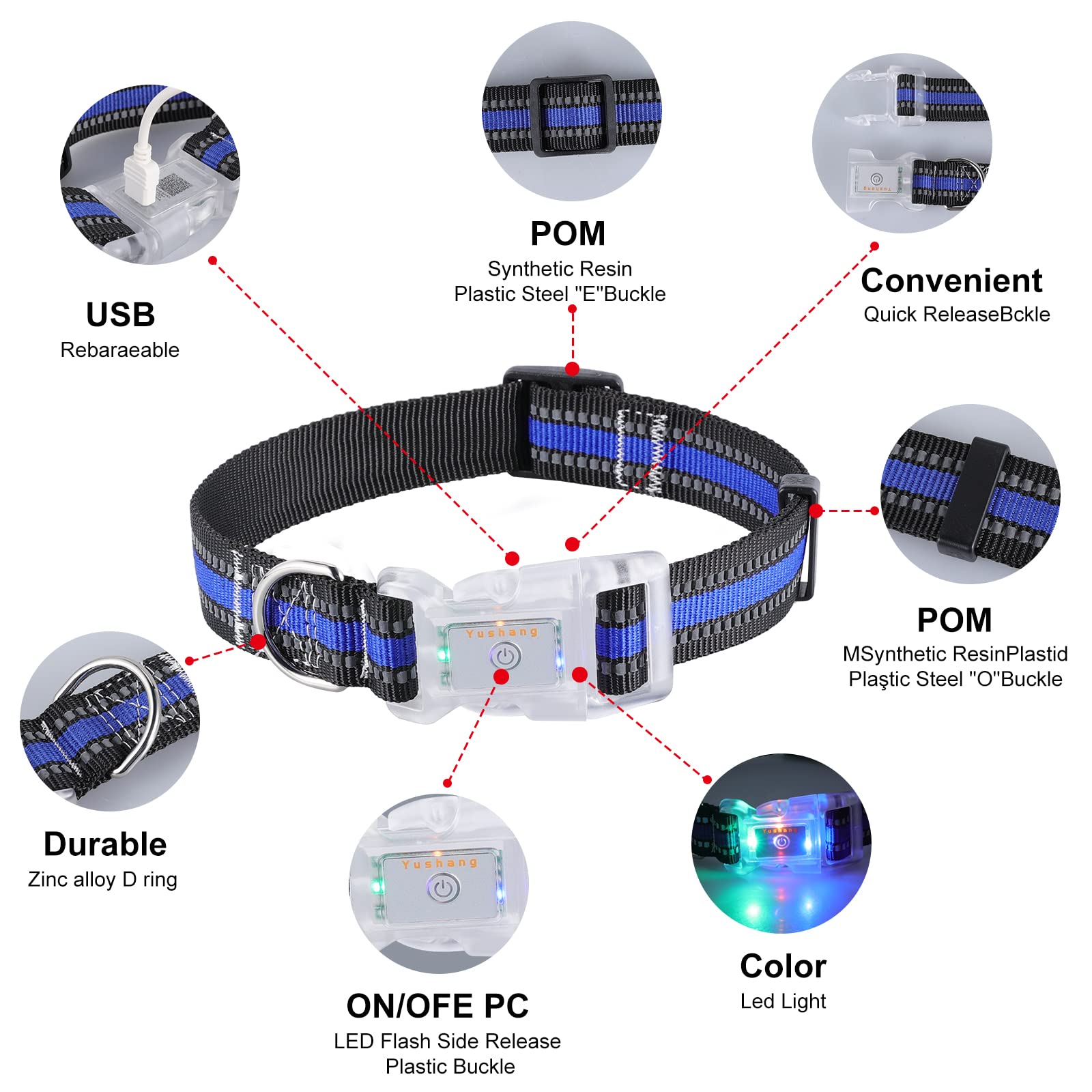 - 【After-sales service】-This led dog collar is designed with soft high quality polyester fabric Makes the quick release clasp lighted dog collar very comfortable to wear around your dog's neck.YUSHANG Promises 100% Satisfaction And 365Day Quality Assurance.