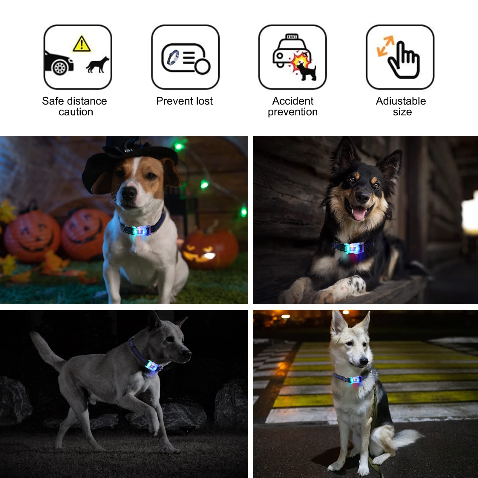 - 【Various colors and sizes】-Size Adjustable led dog collar,Available in 2 sizes (M/S: medium or small, L/M: large or medium) and 6 vibrant colors.Suitable for large, medium and small dog breeds, Please refer to the size chart in the picture to choose a light up color changing collar for your dog.