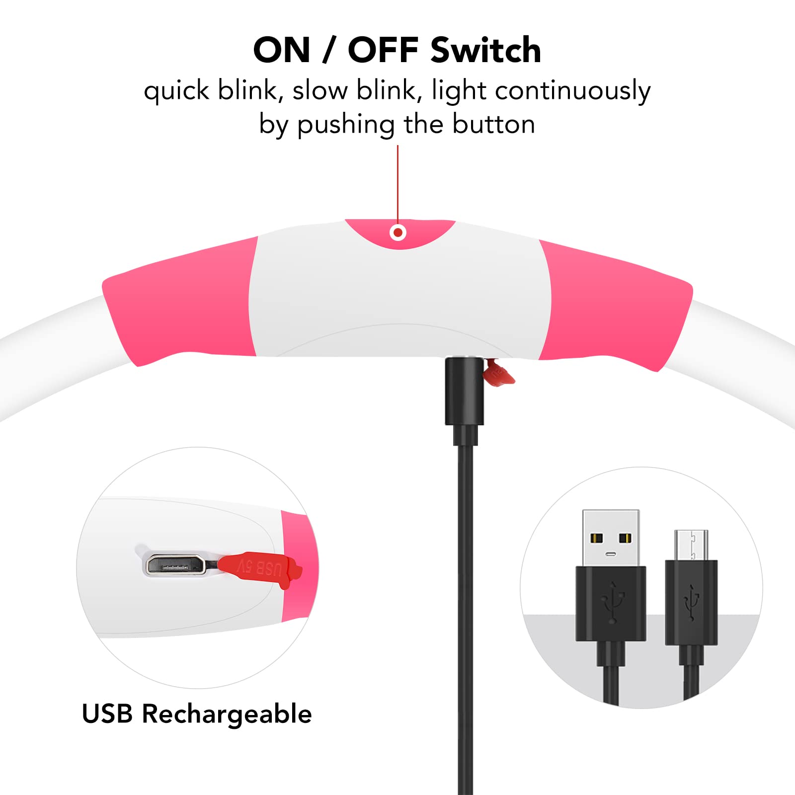 Colaseeme LED Dog Collar, Light Up Dog Collar 1 Count USB Rechargeable TPU Glow Safety Dog Necklace Light, Dog Lights for Small Medium Large Dogs, Please Do Not Use Fast Charging (Pink)