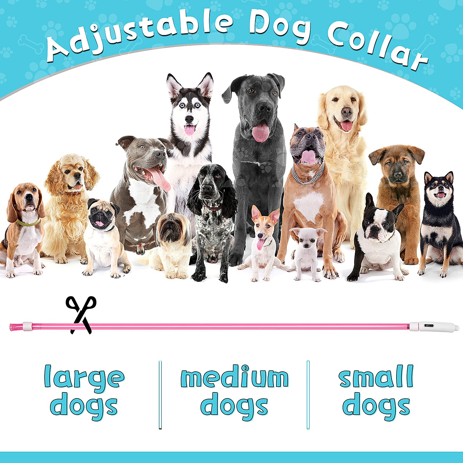 - Adjustable size: the total length of light up dog collar is approx. 27.5 inches, and you could easily tailor the length to the size of the dog's neck like spaniel, labrador, hound, German shepherd, collie and more
