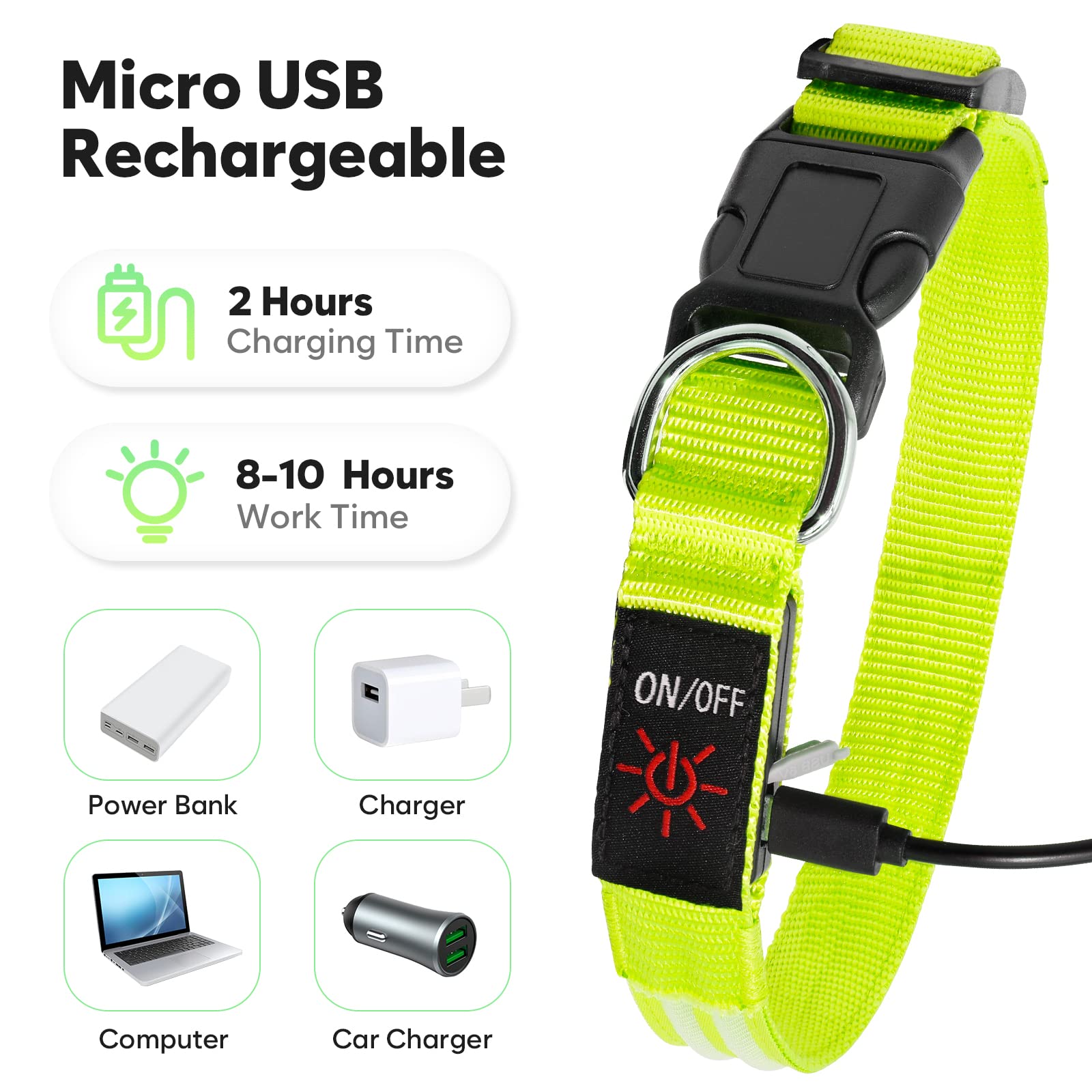 - 💕MICRO USB RECHARGEABLE - Recharge the LED dog collar with ease using a Micro USB cable and daily devices. Enjoy 2 hours of charging time for up to 8 hours of quick flash, 12 hours of slow flash, or 3 hours of steady glow.