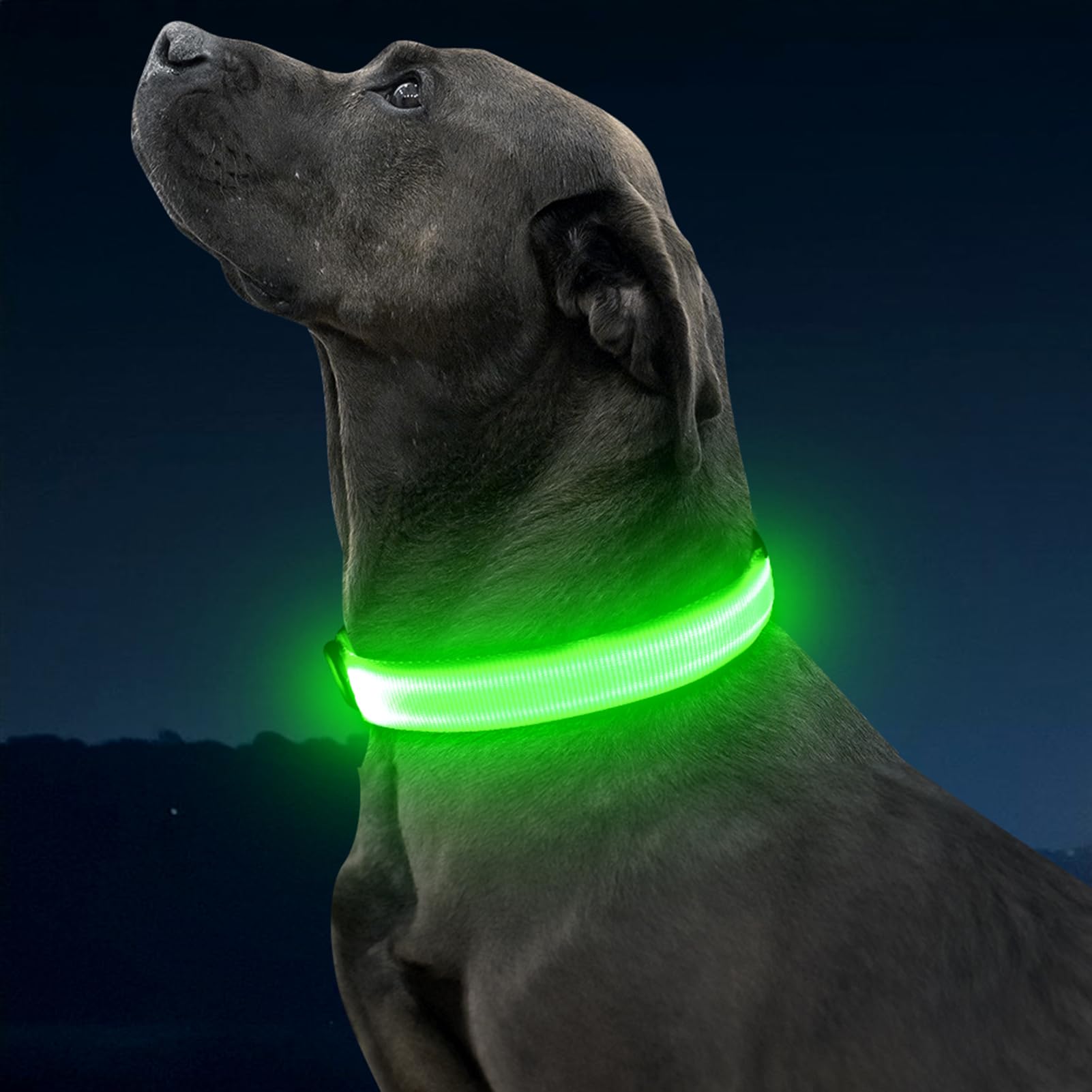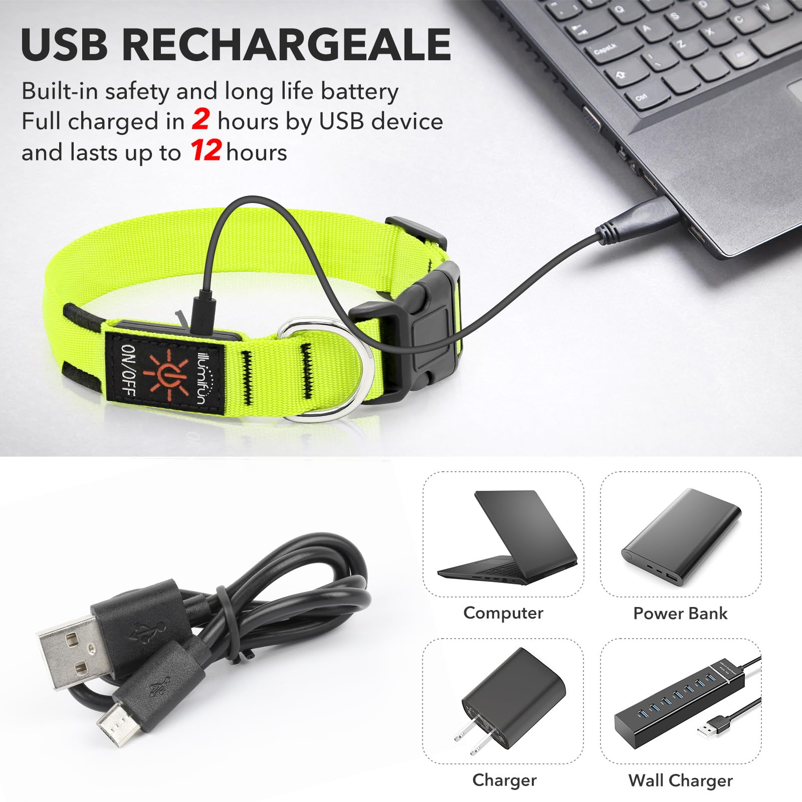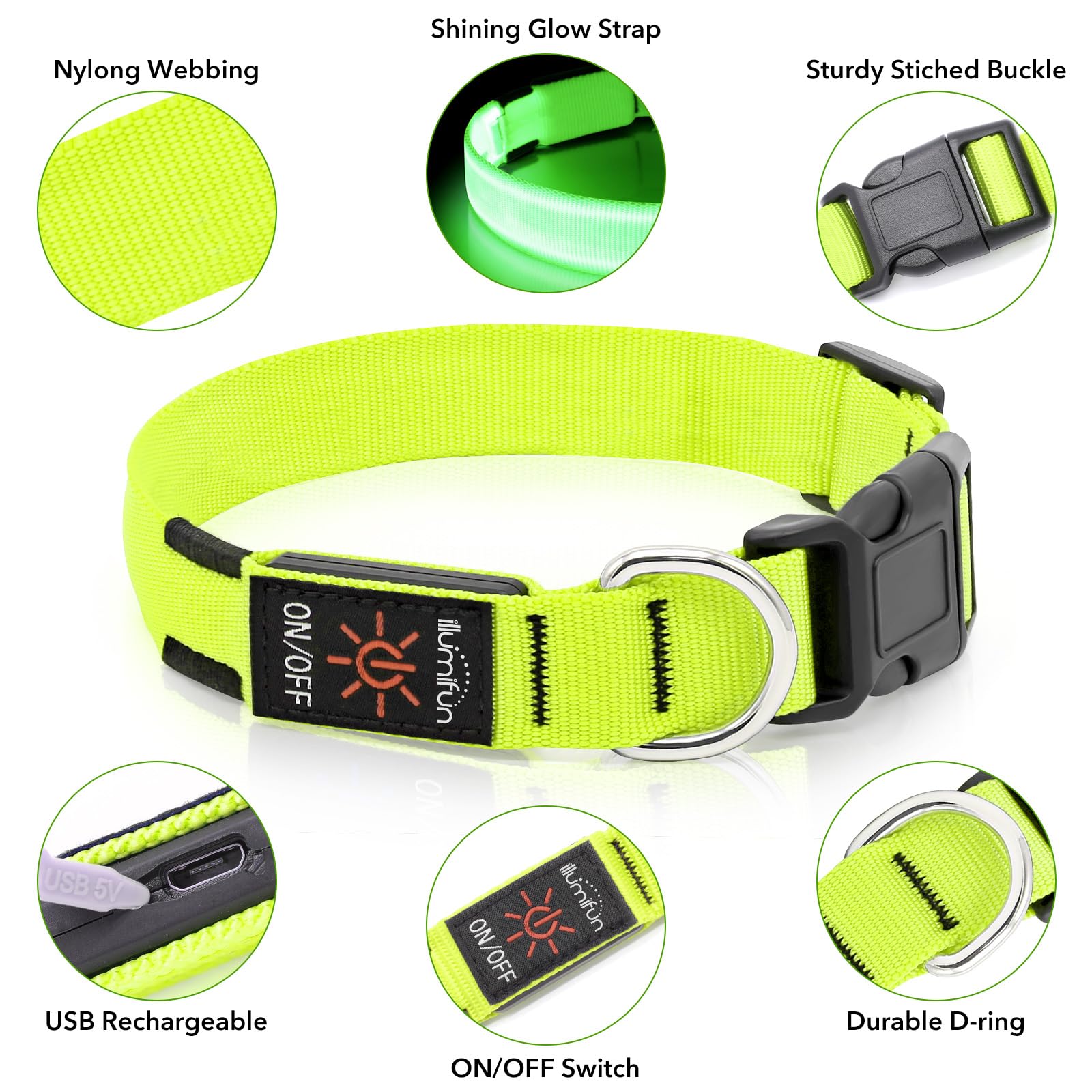 Illumifun LED Dog Collar, Light Up Dog Collar Rechargeable Glow in Dark Pet Collar Safety Dog Lights for Night Walking Camping (Green, Large)