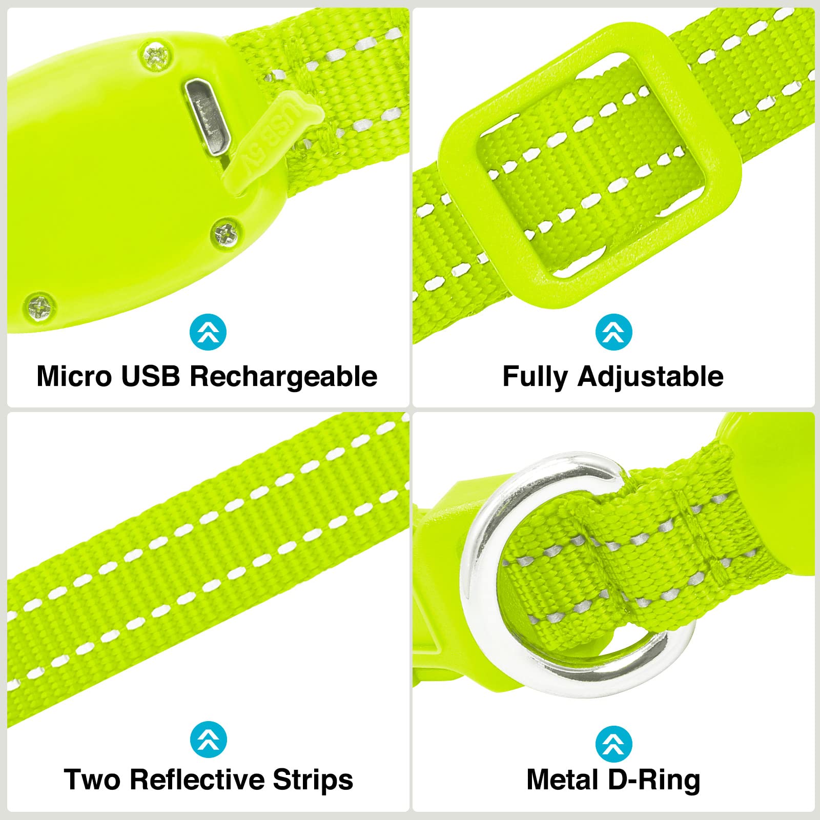KOSKILL LED Dog Collar - Light Up, Adjustable, Rechargeable, Waterproof, Glow in Dark for Small Pets (S, Green)