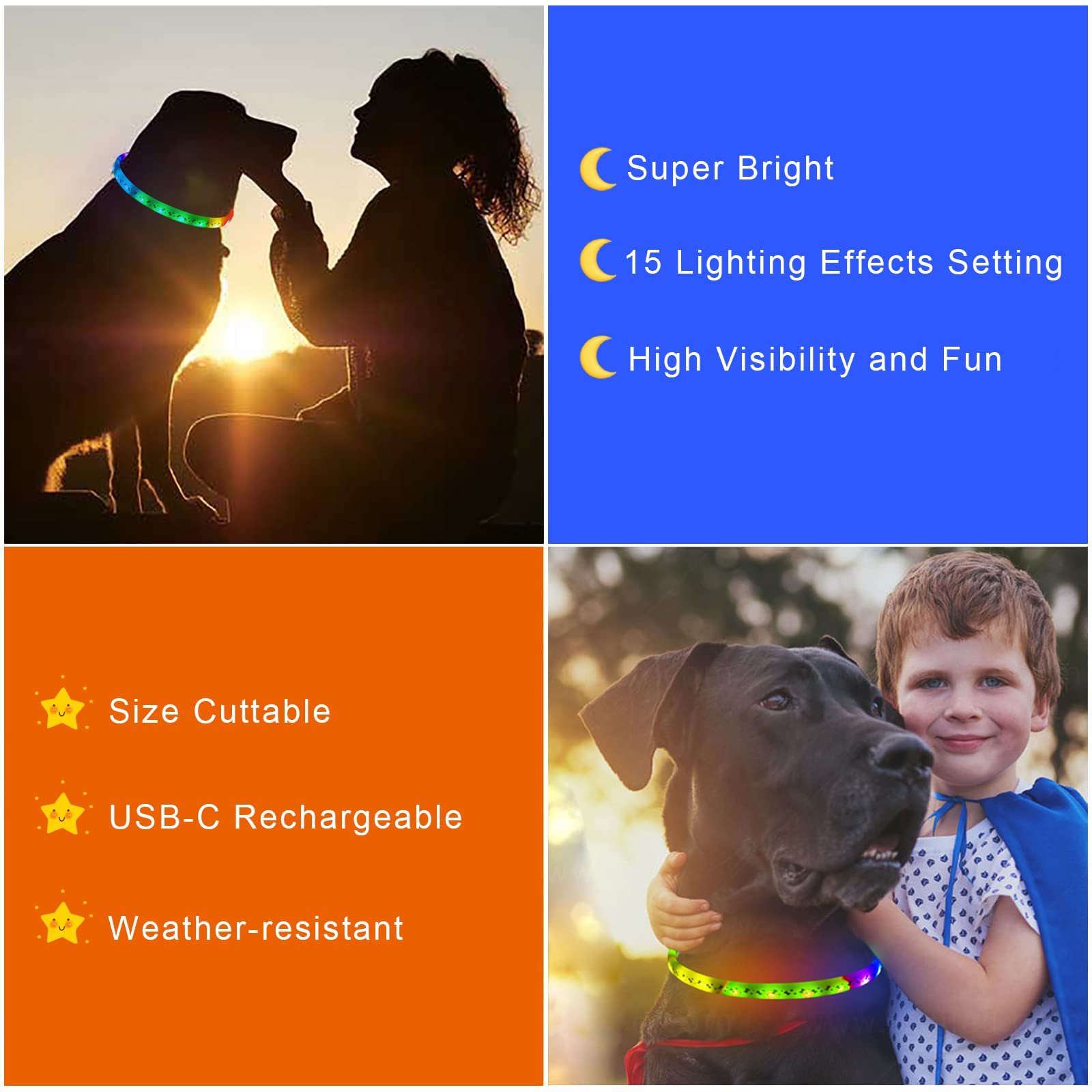 LED Dog Collar - Color Changeable Light Up Dog Collars USB Rechargeable,15 Light Effects Glow in The Dark Collar Weatherproof Fits for Small Medium Large Dog,Keep Your Pets Seen Safety High Visibility