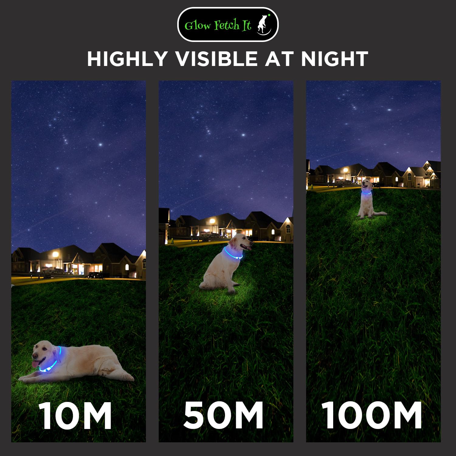 - Glow Fetch It Dog Collar: Offers excellent light visibility up to 1640 feet, which makes the vehicles see your dog well advance in dark preventing your dog from unexpected danger during night walk.