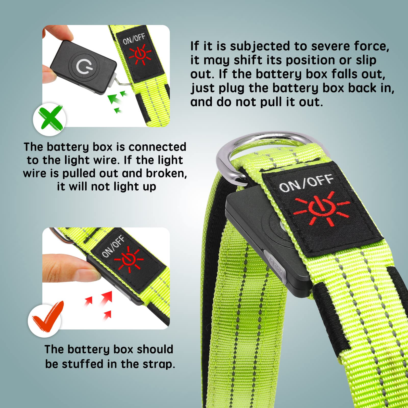 - WELL MADE & WATERPROOF REFLECTIVE - The latest waterproof nylon material(NOT SWIMMING),very durable,strong and chew poof,easy to wash and stain resistant. There are also two reflective strips sewn on the surface of the led dog leash to make you and your dog visible in the dark to avoid accidents.