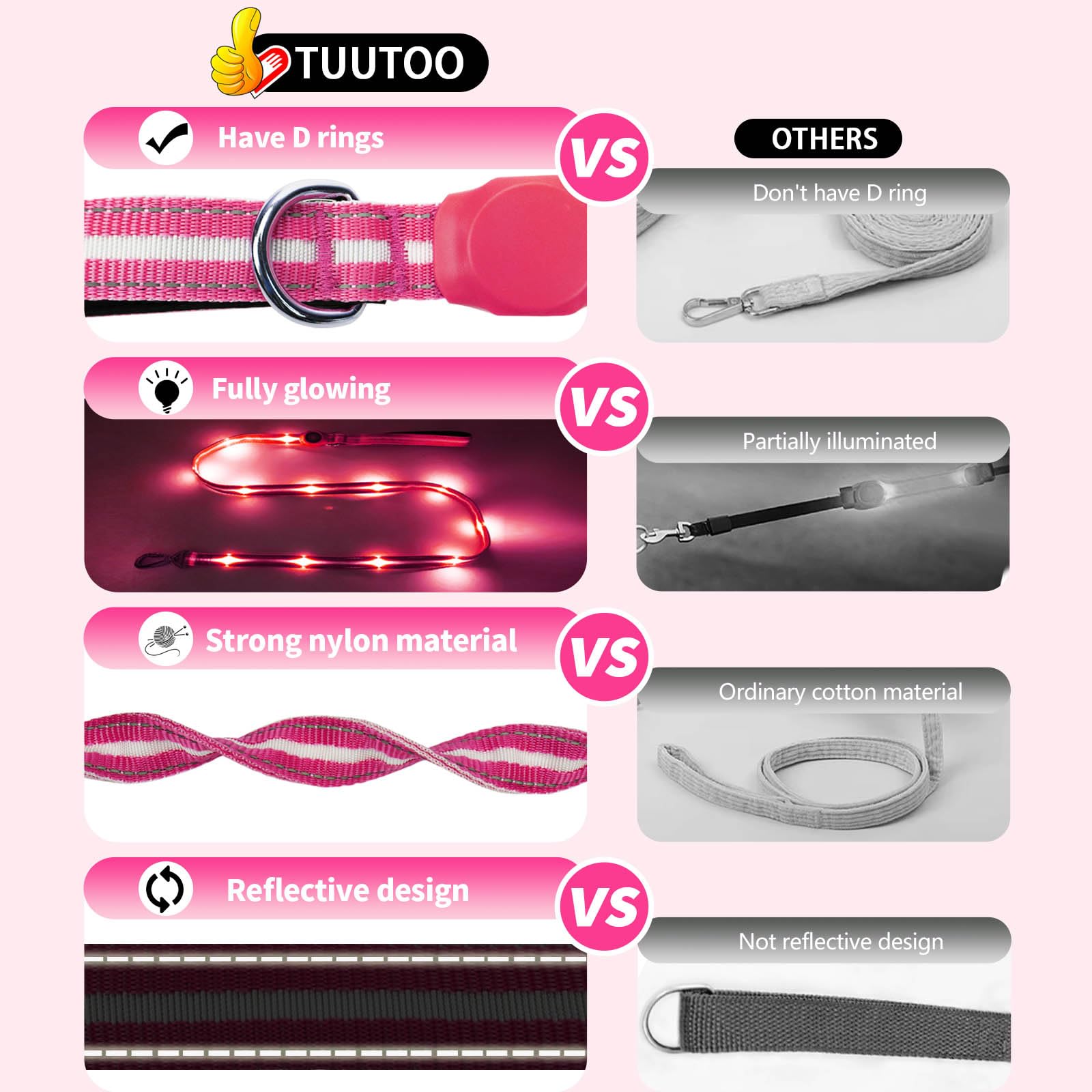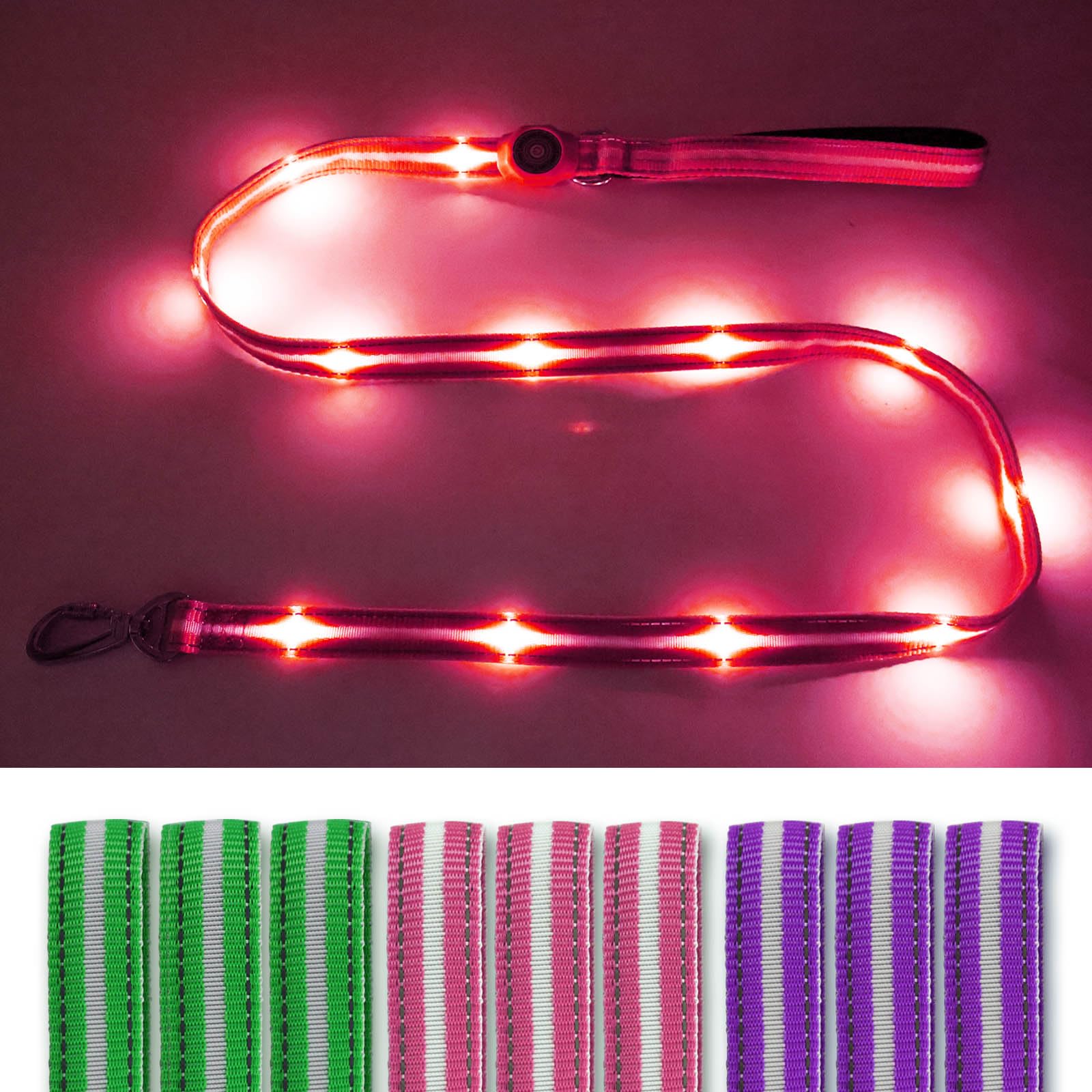 - 👍 HIGH VISIBLE SAFETY DOG LEASH: Our LED dog leash has three modes of LED flashing which is very bright and easily seen.light up dog leash can easily be seen up to 1,000 feet away! The leash boasts individual bulbs for the brightest night time visibility. It’s made of nylon webbing which improves your dog visibility and safety