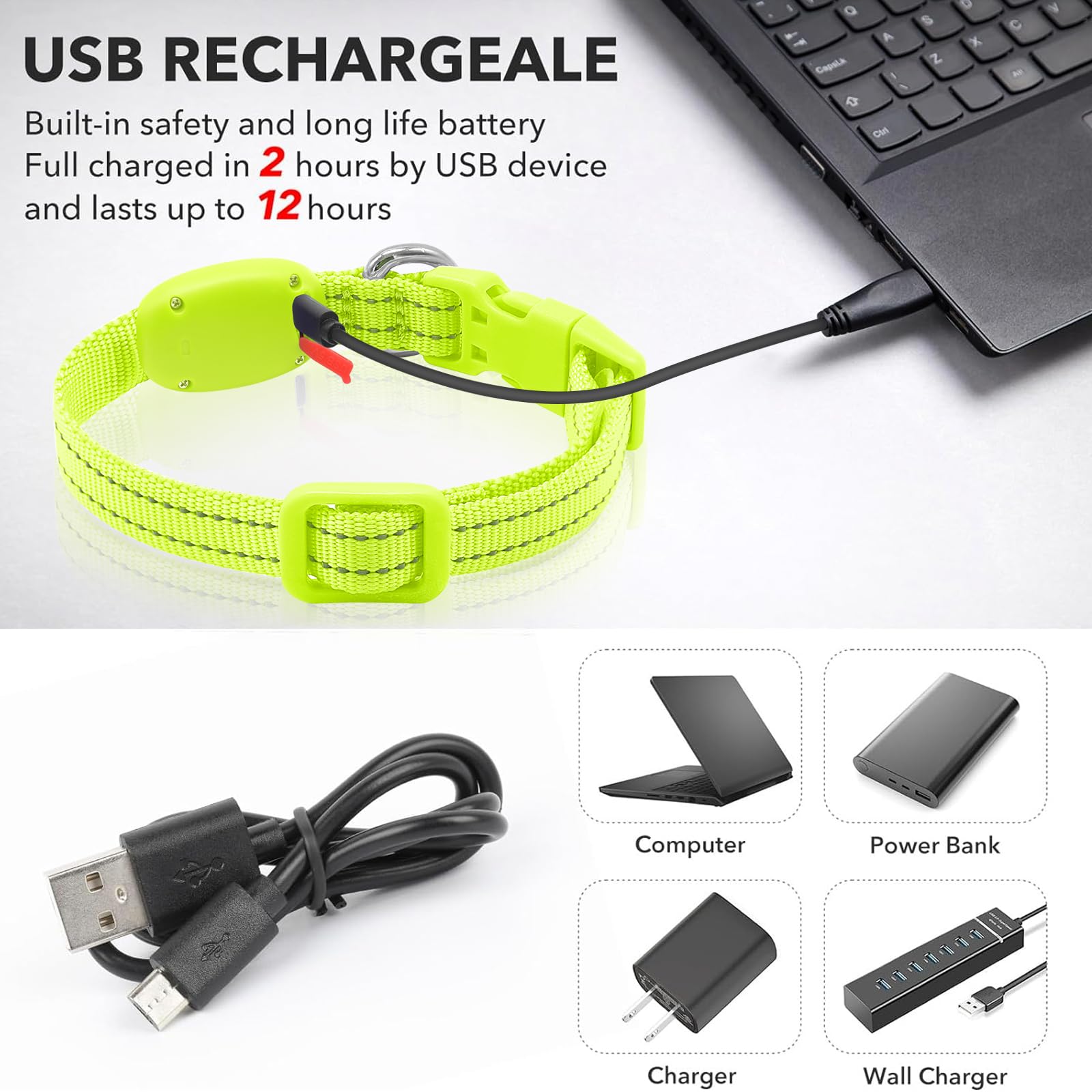 Light Up Collar for Small Dogs Cats - Reflective LED Dog Collar Glow in The Dark, Safety Pet Collar Lights for Nighttime Walking (Green)