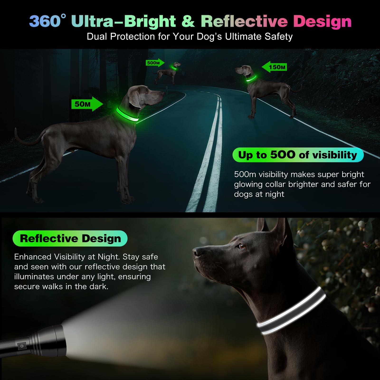 Light Up Dog Collar, Multicolor LED Dog Collar with 7 Lighting Modes - USB-C Rechargeable, Real-Time Battery Indicator, Waterproof & Adjustable Glow Collar for Safe Night Walks (L)