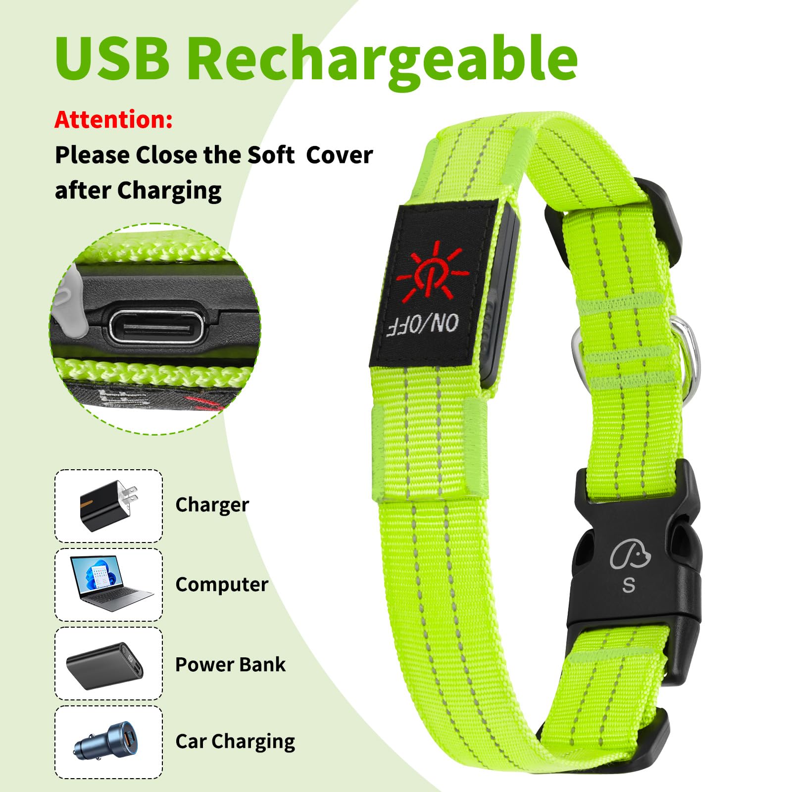 Light Up Dog Collars, LED Dog Collar Light Adjustable USB Rechargeable Super Bright Safety Light Glowing in The Dark Reflective Dog Collar for Medium Large Small Dogs