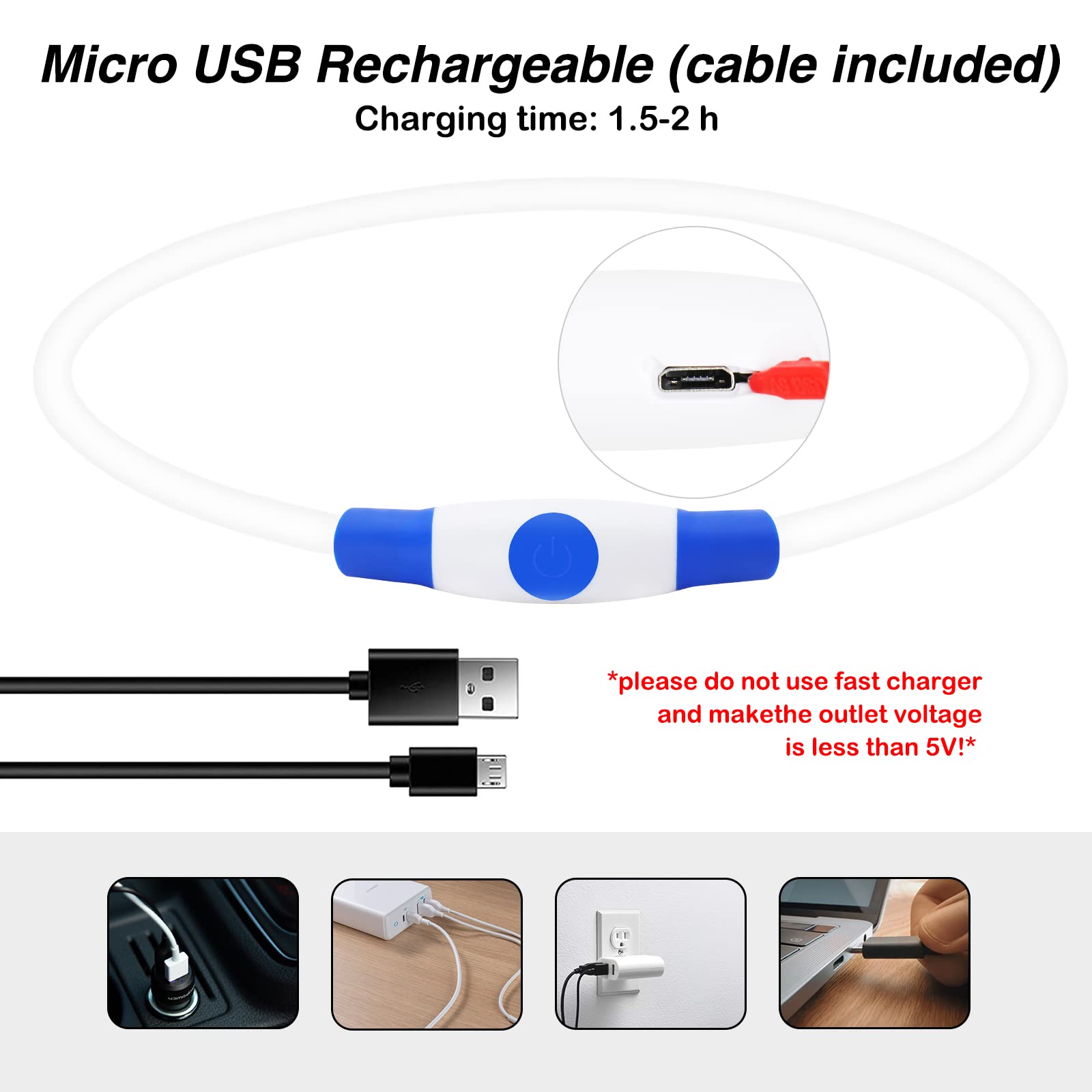- Safety LED Dog Collar: The light dog collar will help you find your dog quickly in the dark. (If the bulb is damaged, the collar will turn into other colors) Please Do Not Use Fast Charging