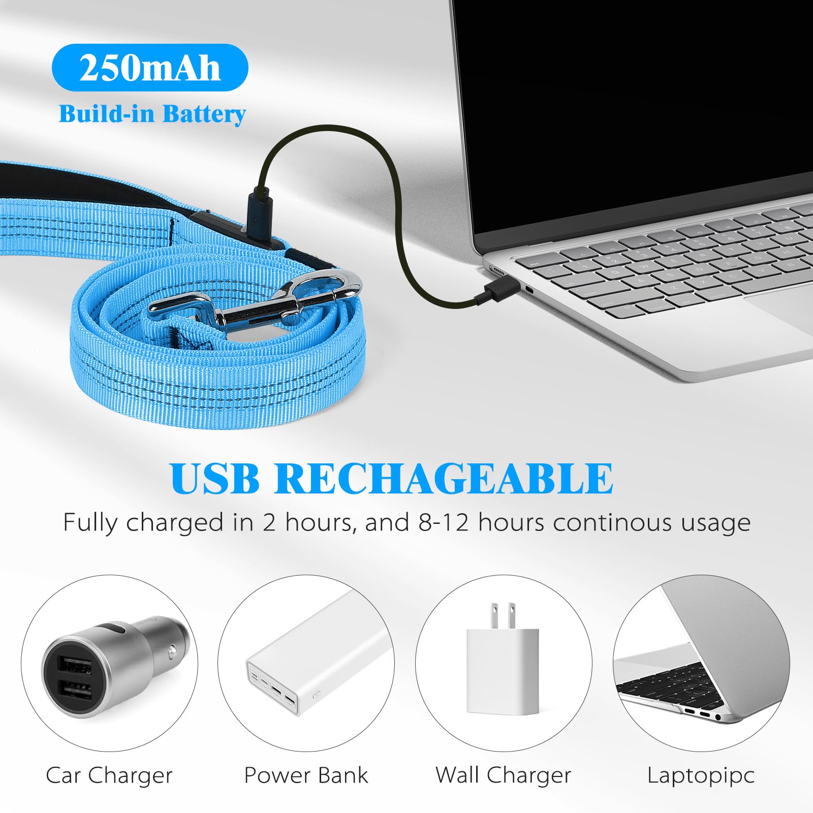 - BRIGHT & SAFE -- This glow in the dark pet leash is highly visible in 500 yards. with 250maH large battery capacity, it is really an affordable way to keep your furry friend from danger.