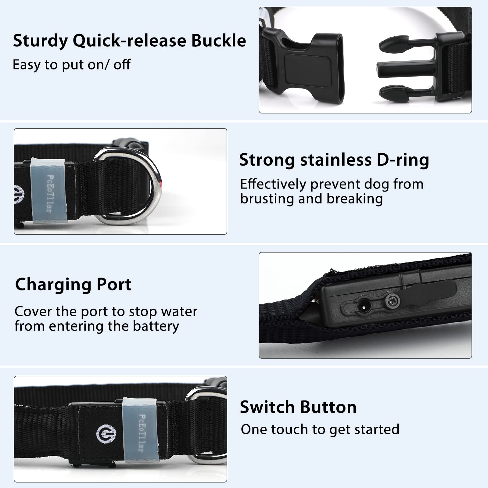 PcEoTllar Light up Dog Collar Lights for Night Walking - LED Dog Collar Light Rechargeable Color Changing, Glow in The Dark Dog Collars Waterproof Glowing Dog Collars for Large Small Medium Dogs