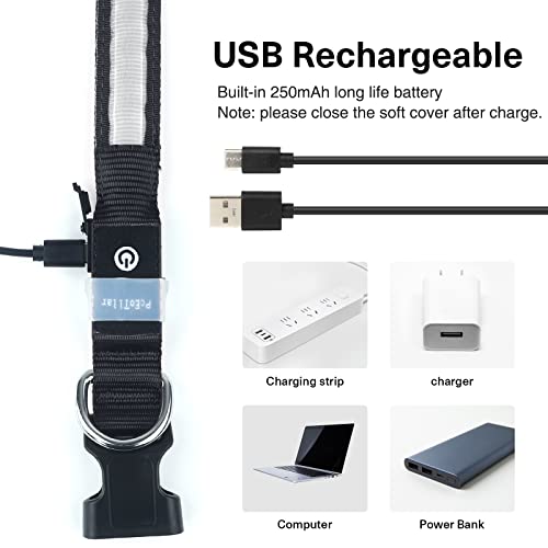 Pceotllar Rechargeable Led Dog Collar - Automatic 7-Color Changes, Water Resistant for Night Walking, Bright Glow (Black, S)