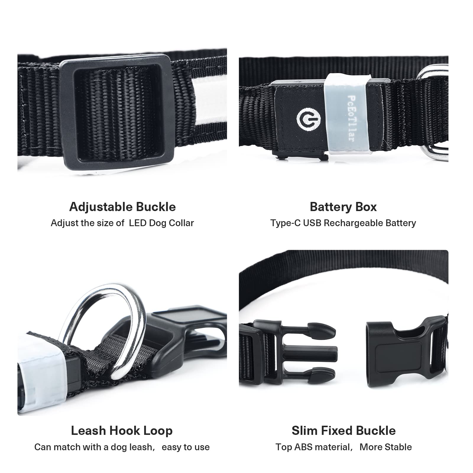 - ★Soft&Durable Glowing Dog Collar: Made of premium durable 100% polyester webbing material with advanced high-tensile sewing technology, PcEoTllar dog collar is soft but durable. With a quick-release buckle, it is easy to put on or take off the collar for your dog.
