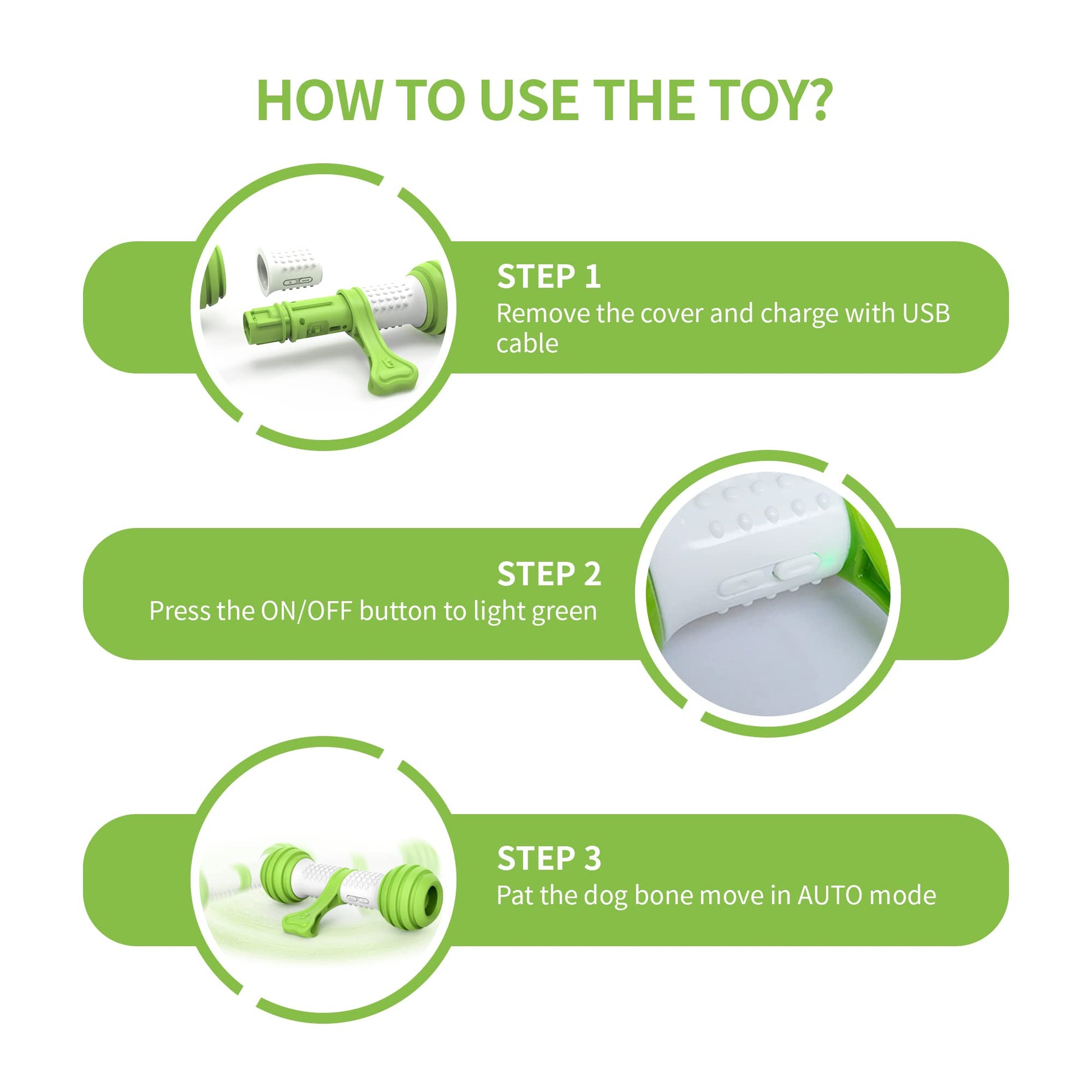 - INTELLIGENT & AUTOMATIC : When you press the switch to the automatic dog toy , It will guide your dog to chase , tease and avoid . The dog's hunting instinct will also be satisfied because of the interactive bone toy .