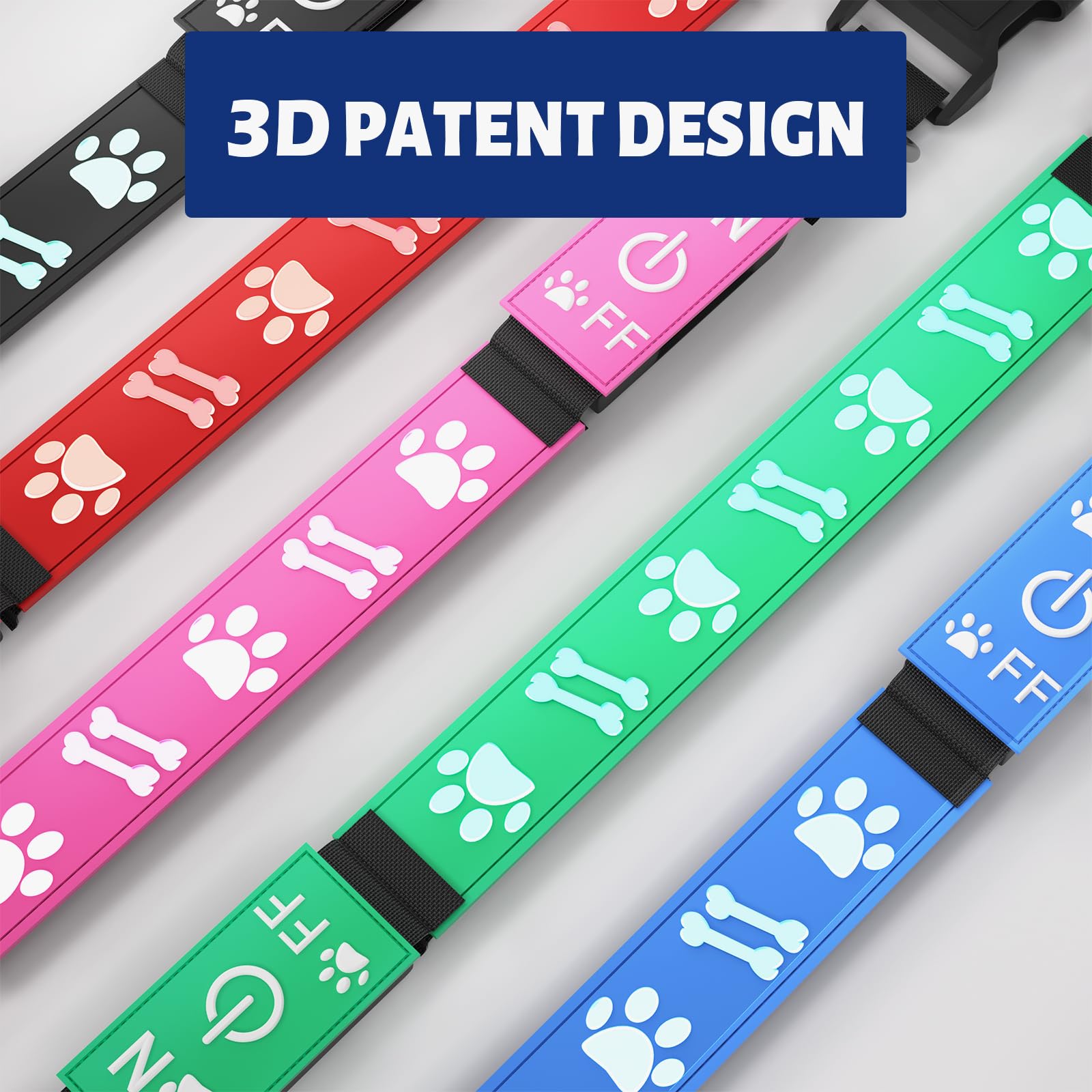 - 🐾【3D DESIGN LED DOG COLLAR】 - Unique 3D patten design. Different with other LED strip design. This dog collar is cute and can help you to find your dog easier in gourp of dogs.