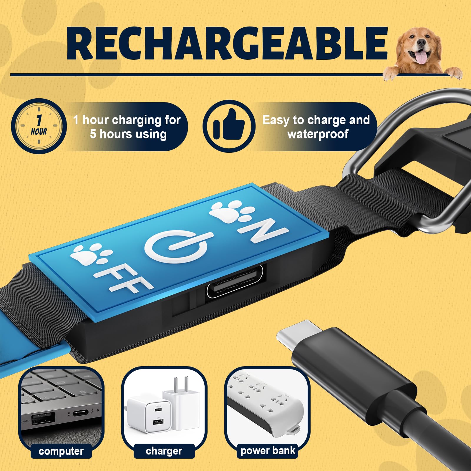 - 🐾【RECHARGEABLE DOG COLLARS】 - Dog collar lights has USB charging port and cable. The flashseen dog collars can be recharged with any USB device. 1 hour charging can offer 5 hours lighting under steady mode.