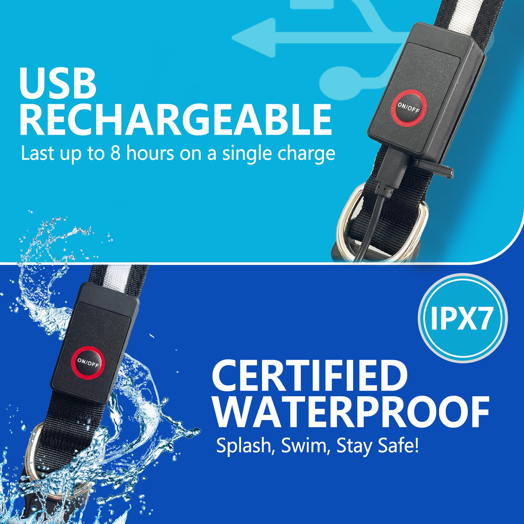TRIPOLACO LED Dog Collar, Multicolor Light Up Dog Collar, USB Rechargeable & High-Visibility Glow in The Dark Dog Collars for Night Walks, IPX7 Waterproof, Large