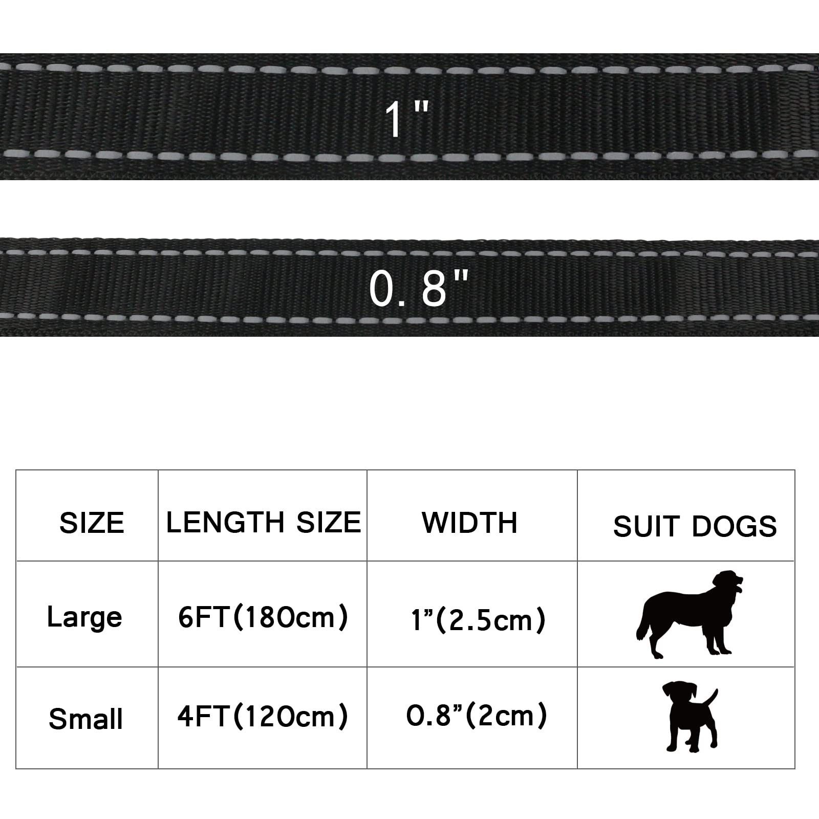 - HIGH-QUALITY & DURABLE: This Long dog leash is made of high-grade nylon, which is really durable. Also it has a Heavy-Duty metal swivel joints to keep the leash from tangling. Soft padded handle is more comfortable.